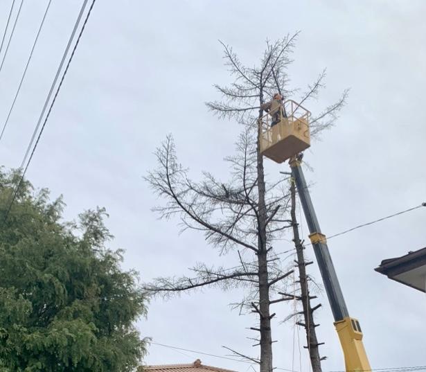 【作業車による伐採】 ![]() ![]() ![]() ・高所作業車やクレーン車両による伐採作業。 |